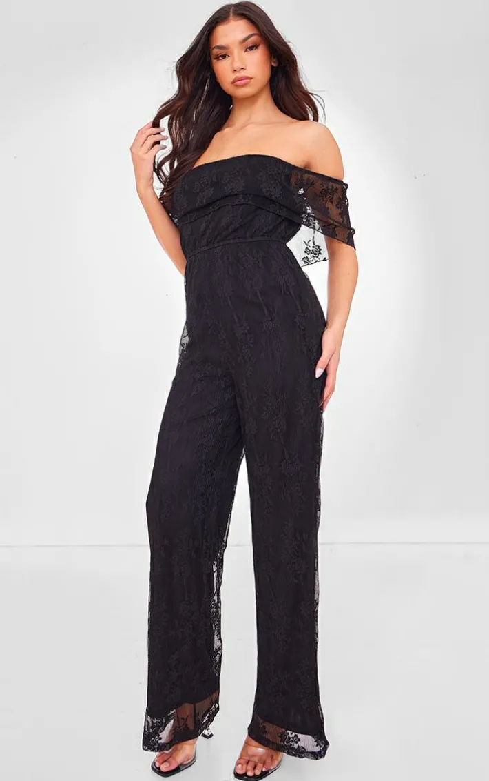 Got a special occasion coming up ? Then this black shimmer floral lace bardot jumpsuit is a must-have. It is made using a black shimmer floral lace material with a bardot style and a figure-flattering fit, what more could you want? Pair this jumpsuit with heels and your fave accessories for a look that will get everyone talking.