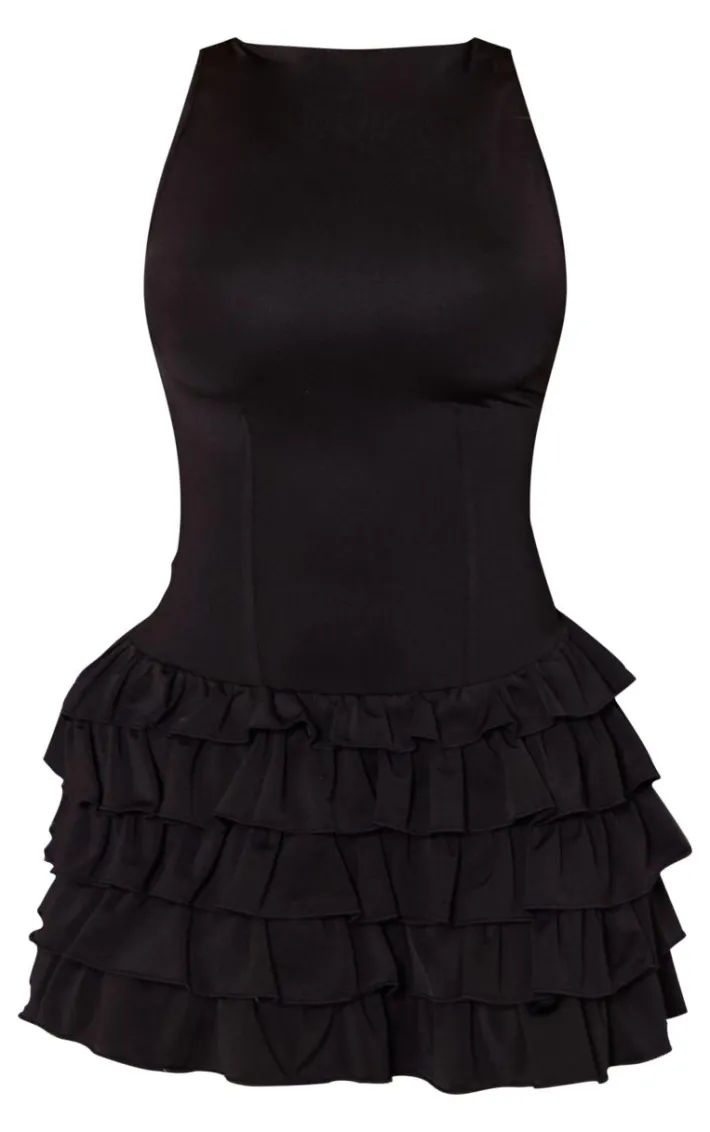 Found some last-minute weekend plans and need an unreal ‘fit? Then we have you covered with this styling staple, a black slinky frill hem micro mini dress. With a black slinky material with a frill hem and a micro mini length, we’re obsessed. Work your styling techniques and add a for a weekend-worthy finish that will gain all the likes.