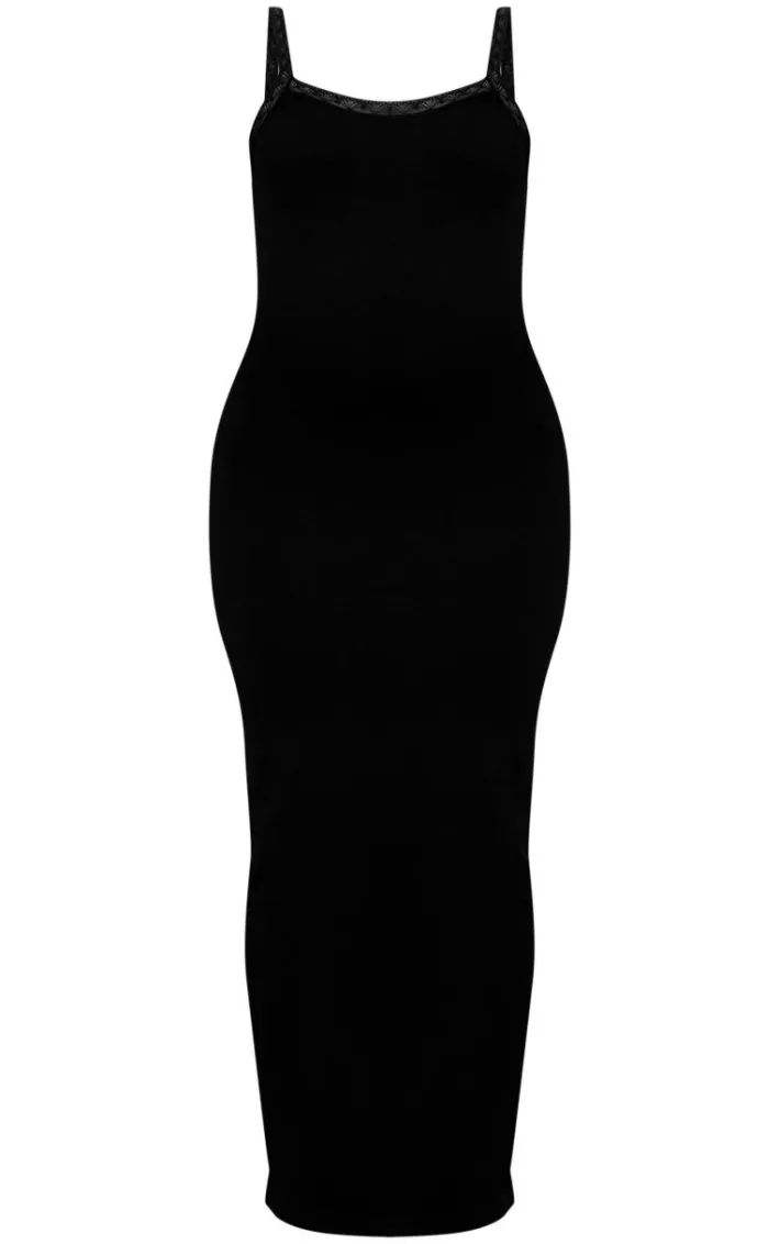 Your new season wardrobe wouldn’t be complete without this black snatched sculpt strappy lace midaxi dress, it is the perfect versatile piece to dress up or down. This dress features a black material with lace detailing and thin straps, you’ll be reaching for this midaxi dress again and again. Pair with platform sandals and your go to accessories for an instant chic finish.