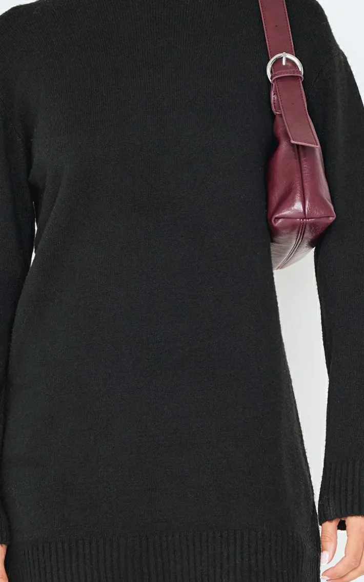 Elevate your basics collection with this black soft knit oversized basic sweater dress. Brought to you in a black soft knit material with an oversized fit, this basic sweater dress is perfect for those day to night looks and beyond. Team with your fave knee high boots and your go-to accessories for a look like no other.