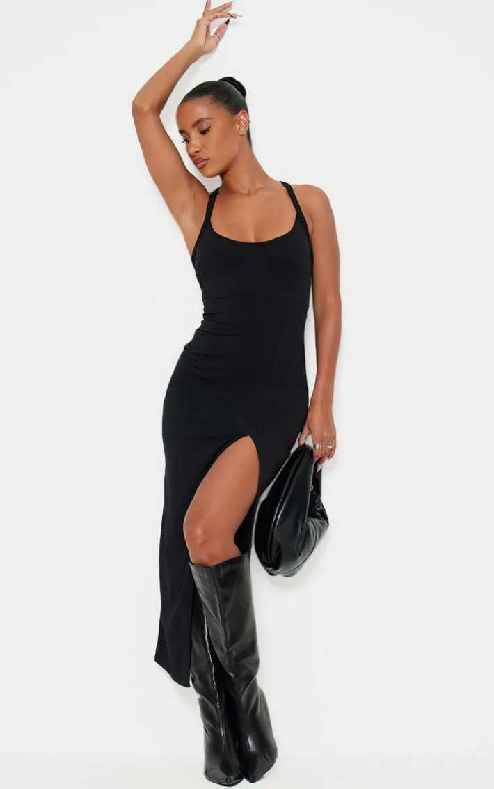 Turn up the heat in your new season wardrobe with this black soft rib cut out tie back midaxi dress. Brought to you in a black soft rib material with a cut out design, a tie back and a midaxi length, how could you resist? This midaxi dress is sure to take the center stage in your wardrobe. Pair with your black toe-thong sandals and accessories for a look that we can’t stop crushing on.