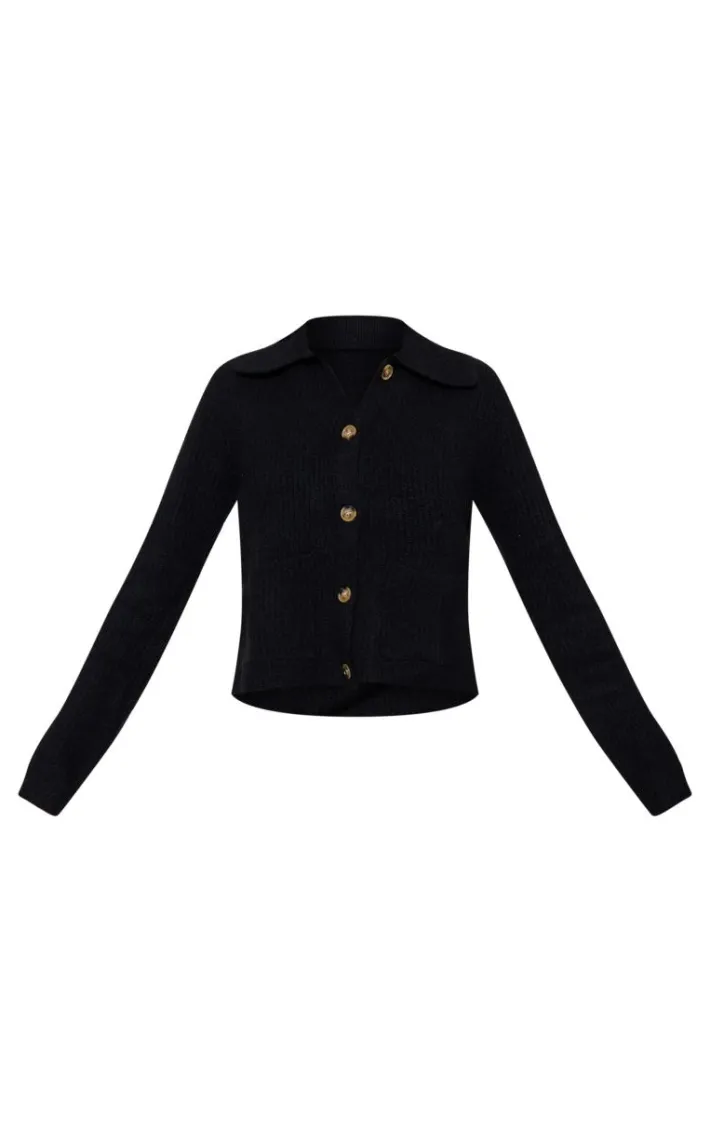 Your outfit of the day is calling out for this black soft textured knit button-up collar detail cardigan. Brought to you in a black soft textured knit material with a button-up collar detail, we are seriously obsessed. Team this unreal cardigan with a puffball skirt, a pair of trendy boots and your fave accessories for a fool proof finish.