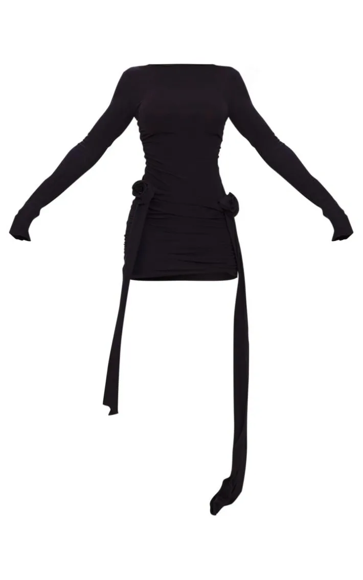We have got your weekend ‘fit covered with this so stop scrolling and add this black soft touch long sleeve rose detail ruched bodycon dress to your basket. Brought to you in a black soft touch material with long sleeves, a rose design and ruched detailing, what more could you ask for? This is at the top of our hitlist this season and is sure to impress. Simply team with your fave heels, gold accessories and a mini bag to nail all the major trends.