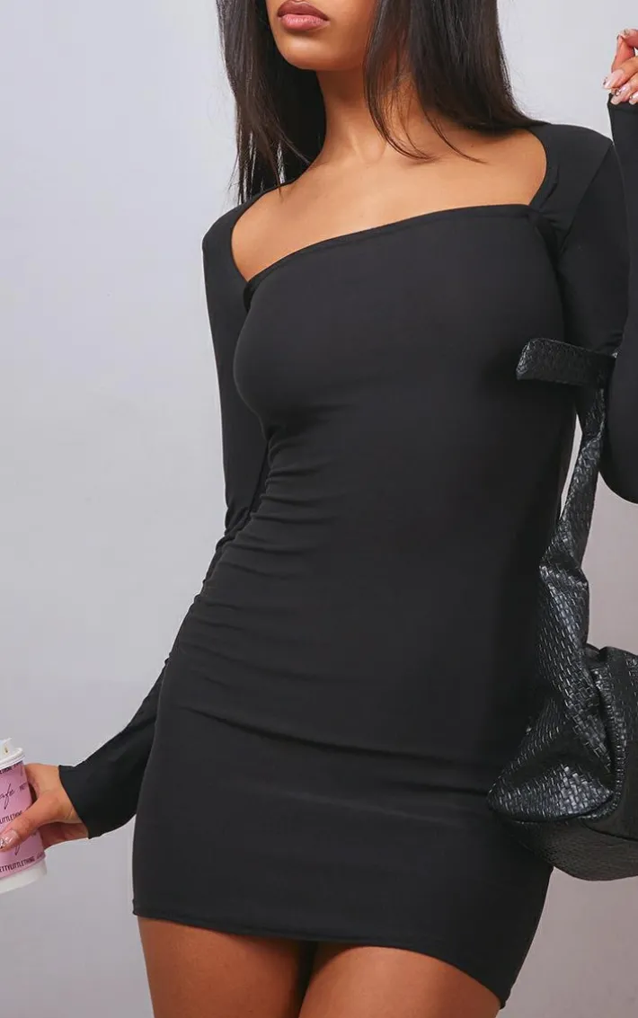 Meet your new season wardrobe essential with this black soft touch square neck long sleeve bodycon dress, it is perfect for dressing up or down. This dress features a black soft touch material with a square neck design and long sleeves, we’re obsessed. Simply pair with chunky sneakers and your fave accessories for a look everyone will love.