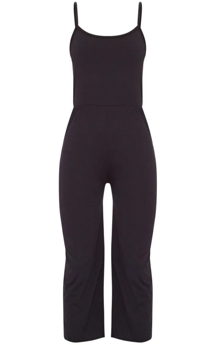This simple jumpsuit is perfect for those chilled days. Featuring a black jersey material with thin straps and culotte bottoms. Style this with an oversized shirt and fresh kicks to complete the look.