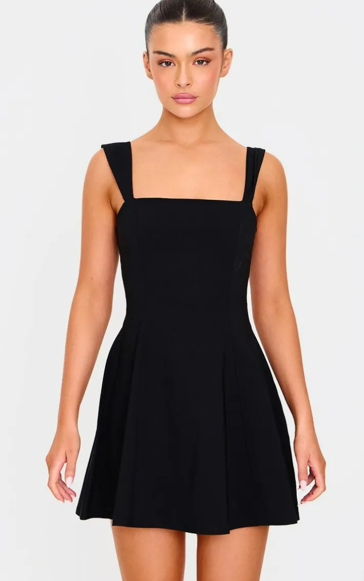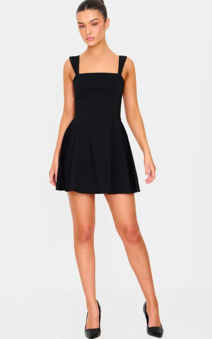 Deciding what to wear just got easier with this black stretch woven shift dress. Made from a black hue woven material with a stretch detail and square neckline, this shift dress is all the new you need. Pair with gold accessories and slip on heels for a chic finish that’s sure to elevate your every day.