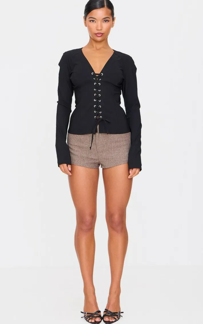 Elevate your outfit of the day with this black stretch wove tie front fitted shirt. Brought to you in a black hue stretch woven material with a tie front fastening and fitted design, this shirt is all the new you need. How can you resist? Team with mini shorts, slip on heels and gold accessories for a look like no other. It’s a yes from us.