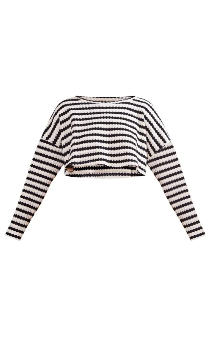 Get ready to make a statement in your everyday wardrobe with this black stripe textured rib oversized crop top. This top is made from a black stripe texture rib material with an oversized fit and a cropped length, how could you say no? This crop top is everything you need to take your look from 0-100. Finish off the look by adding the matching shorts, sandals and accessories for a look like no other.