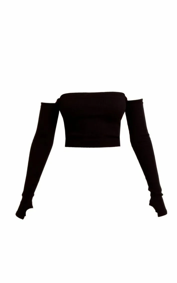 The new season is calling and your wardrobe needs updating with this black structured snatched rib bardot crop top. Its black snatched rib material adds a luxe vibe to your look and its bardot neckline keeps it seriously chic. This crop top is a staple and it has endless styling possibilities. Wear with denim jeans, box-fresh sneakers and everyday accessories for a flawless finish.