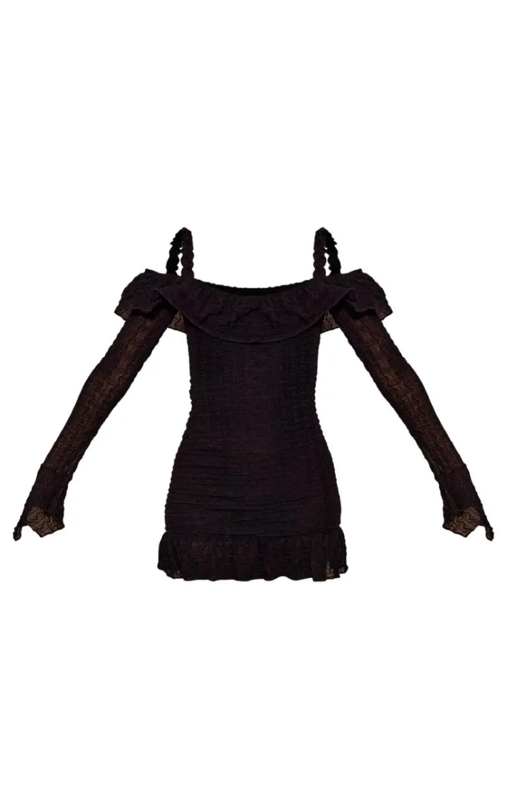 Say hello to your new season staple with this black textured bardot frill hem bodycon dress. Brought to you in a black textured material with a bardot fit and a frill hem detail, how could you say no? This bodycon dress is sure to earn you all the styling points this season and beyond. Style effortlessly with some cowboy boots and your fave accessories for a look that will turn heads for all the right reasons.