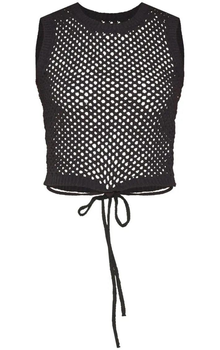 Say hello to your new season staple with this black textured crochet tie detail racer neck top. Brought to you in a black textured crochet material with tie detail and a racer neck, how could you say no? Style effortlessly with a green maxi skirt, sandals and accessories for a look that will turn heads for all the right reasons.