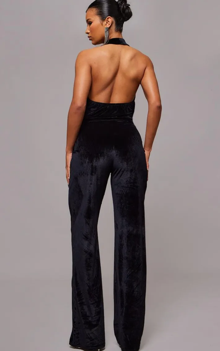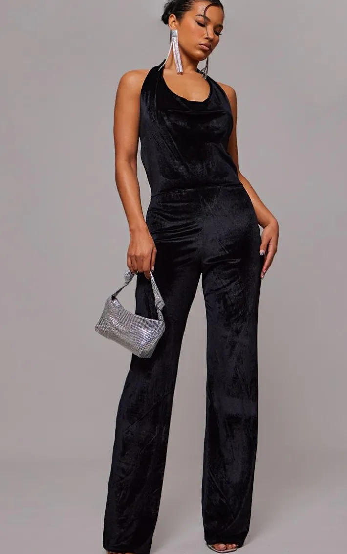 Look all kinds of chic in this black velvet cowl neck wide-leg jumpsuit. Brought to you in a black velvet material with a cowl neckline and a flattering wide leg fit that is sure to show off your shape in all the right places, how can you resist? Style this jumpsuit with court heels and some glam accessories for a look they won’t be able to take their eyes off. You know you won’t be able to resist.