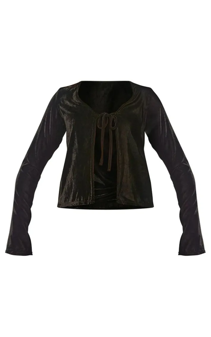 We are all about the velvet feels this season so get ready to earn some serious style points in this black velvet tie front shirt. Brought to you in a black hue velvet material with a tie front design and long sleeves, how can you say no? Team this velvet shirt with sheer pants, heels and some glam accessories for a look that will have you entering party season in style.