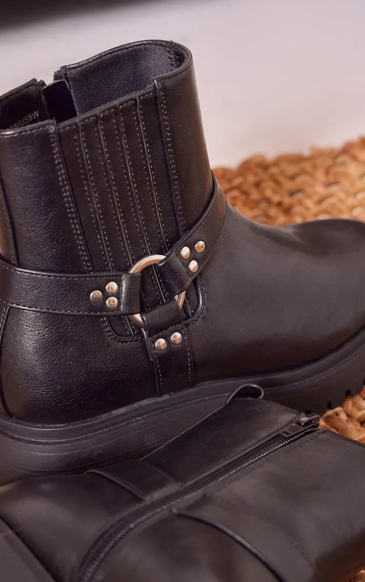 The A/W seasons call for a pair of boots and we can’t get over these black wide fit PU buckle detail ankle boots. These boots are brought to you in a black PU leather material with a wide fit, a buckle design and a chunky sole, what’s not to love? Simply style with your outfit of the day for a combo like no other.