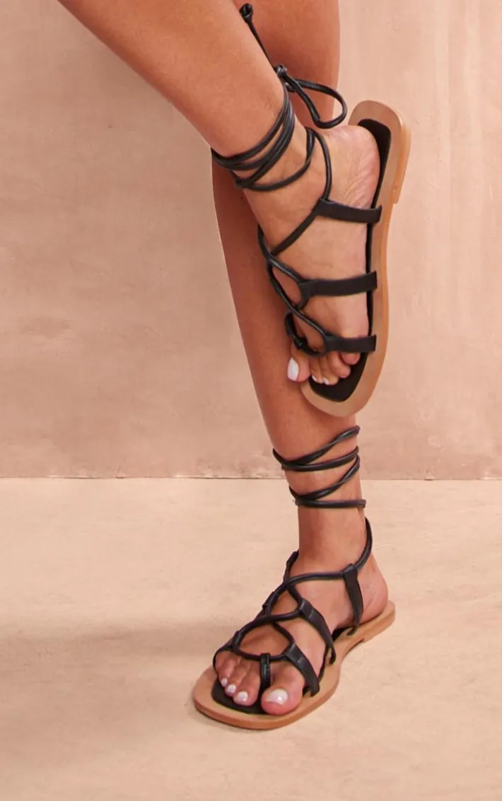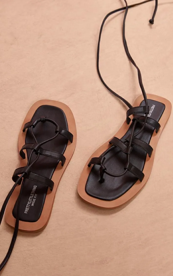 Make room in your summer wardrobe for these black wide fit leather round toe lace up flat sandals. Brought to you in a black leather material with a round toe design, lace up detailing and flat style. It’s official, we’re obsessed. Pair these real leather sandals with your fave outfit of the day for a look that will earn you all the style points