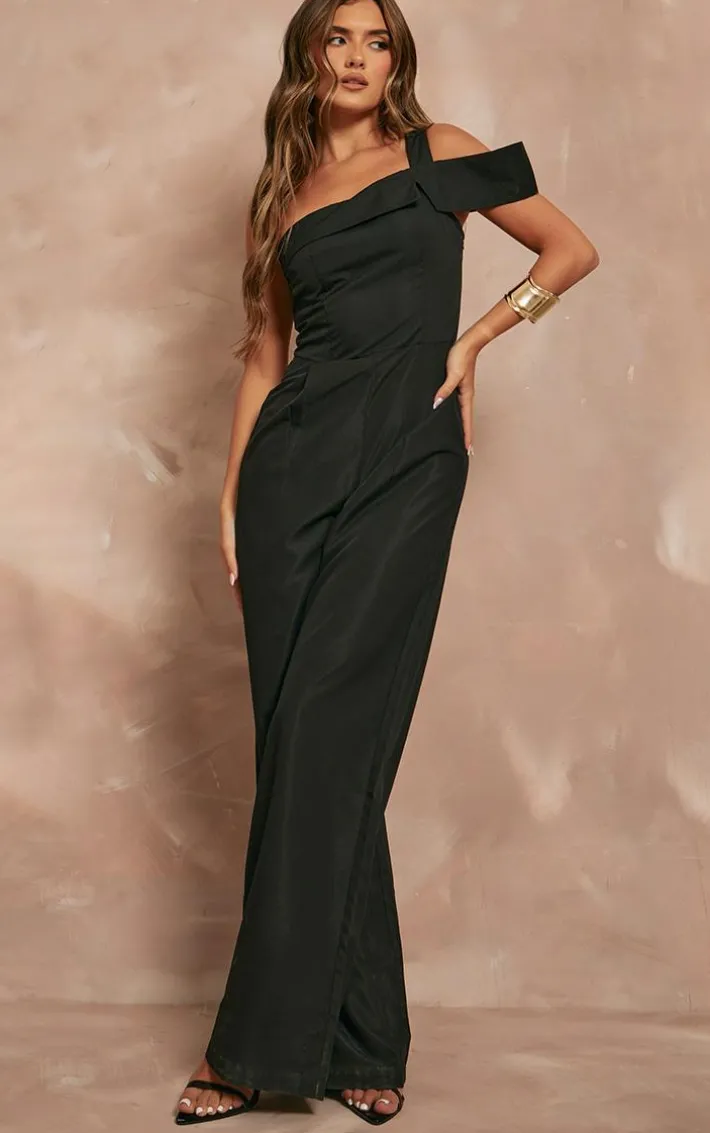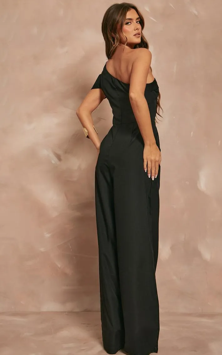Got an upcoming occasion pencilled into your diary? Then this black woven one shoulder pleated detail wide leg jumpsuit is perfect for you. Brought to you in a black woven material with a one shoulder design and a pleated detail, what’s not to love? This wide leg jumpsuit is sure to solve all of those what to wear dilemmas. Team with a pair of heels and your fave gold accessories for a finished look we are loving.