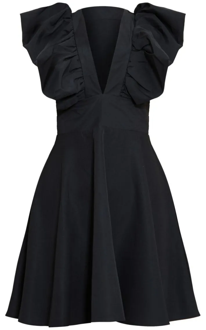 Say hello to your new season staple with this black woven ruffle sleeve plunge pleated belt shift dress. This shift dress is brought to you in a black woven material with ruffle sleeves, a plunge neckline and a belted design, what’s not to love? This shift dress is everything and more we’re loving paired with knee-high boots and gold accessories. It’s a yes from us.