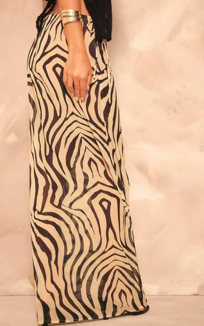 Give your new season wardrobe the ultimate luxe upgrade with this black zebra print chiffon tie side maxi skirt, we’re obsessed. This skirt is made using a black chiffon material with a zebra print and a tie side design Pair this chiffon skirt with a statement top, heels and your go to accessories for a flawless finish.