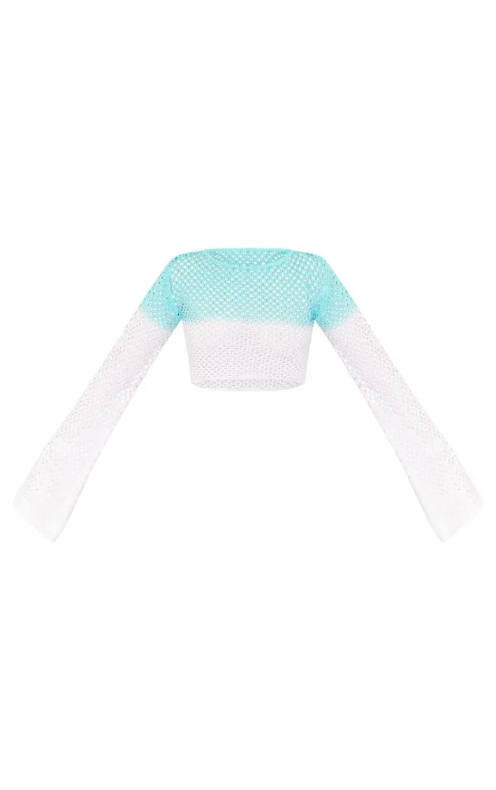 Get vacay ready wiht this blue and white ombre crochet flared sleeve crop top. Brought to you in a blue and white ombre crochet material with a flared sleeve detail, this crop top is at the top of our wish list. Pair with the matching shorts and heels for a combo we’re crushing on this season.