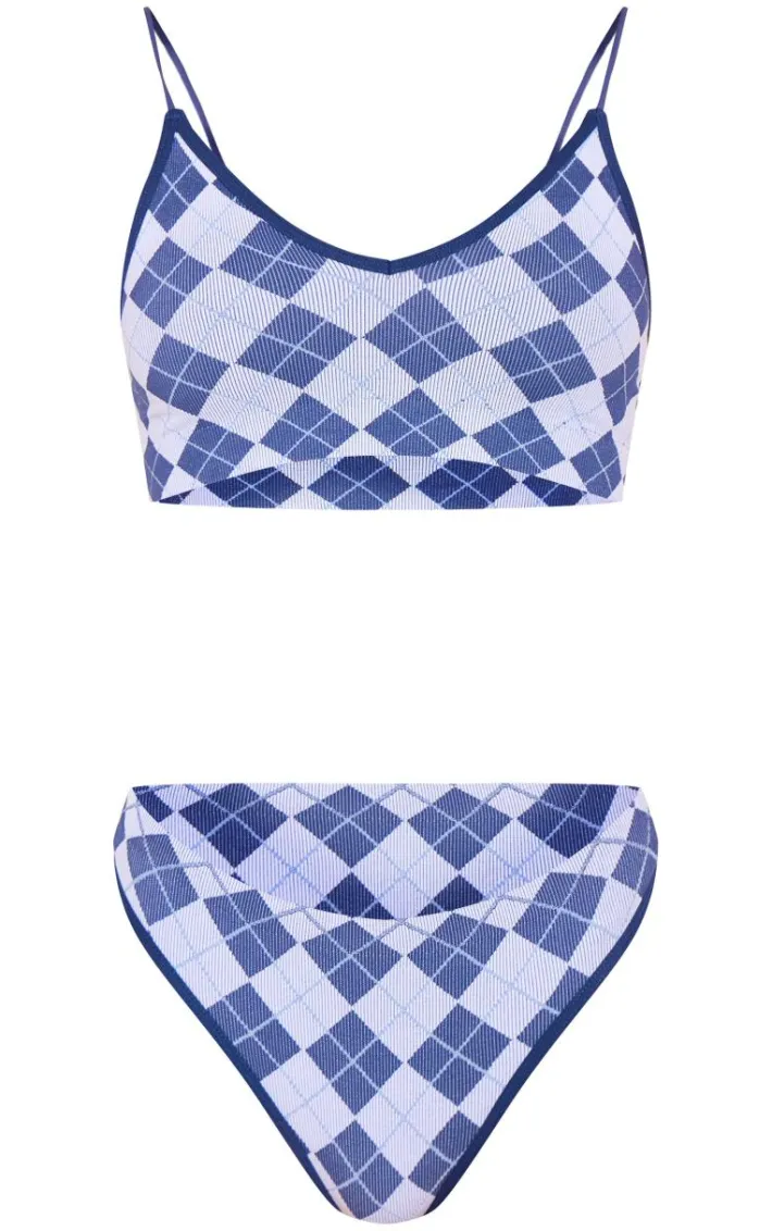 You need this blue argyle seamless bralette and thong lingerie set in your collection. Brought to you in a blue seamless material with an argyle design, we are seriously obsessed. Team this bralette and thong lingerie set under your outfit of the day, or with some fluffy socks for those nights in on the sofa.