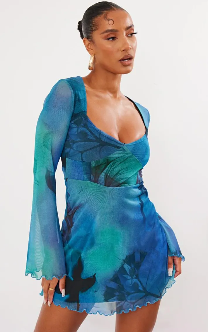 This dress is the perfect new season piece for all your occasions. Featuring a blue mesh material with a blur floral print, underbust detail and a shift design, what more could you ask for? Complete the look with knee-high boots, a mini bag and gold hoops for a vibe that will get you all the likes.