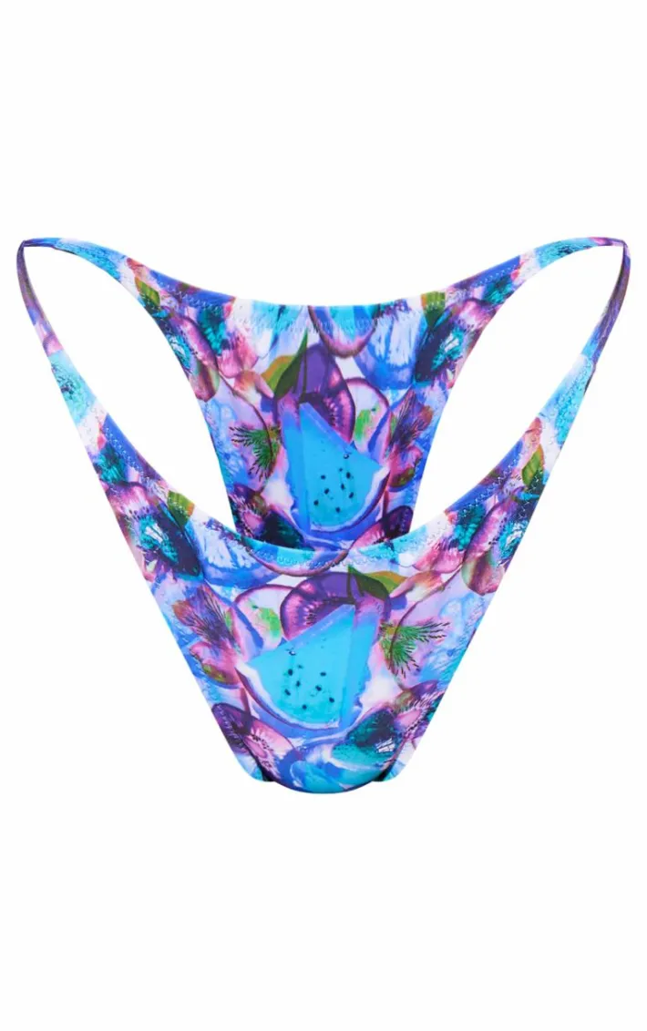 Set major trends this season with these blue blurred fruit print mini bikini bottoms. Brought to you in a blue material with a blurred fruit print and a mini fit, what more could you want ? These bikini bottoms will have you feeling effortlessly chic all season long. Team with your fave accessories and the matching bikini top for a fool proof finish we are obsessing over.