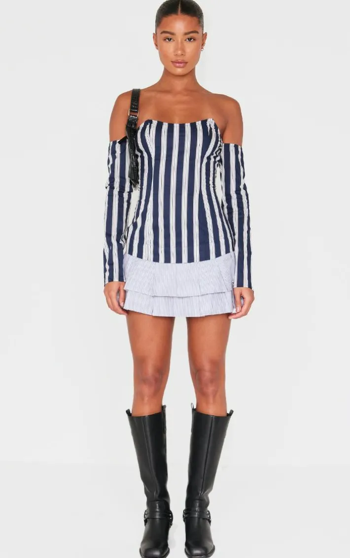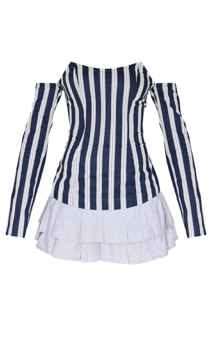 Deciding what to wear just got easier with this blue contrast pinstripe bardot shift dress. Brought to you in a blue hue material with a contrast pinstripe design and bardot neckline, this shift dress is a must have. How can you say no? Team with slip on heels and simple accessories for a look that’s sure to get you noticed.