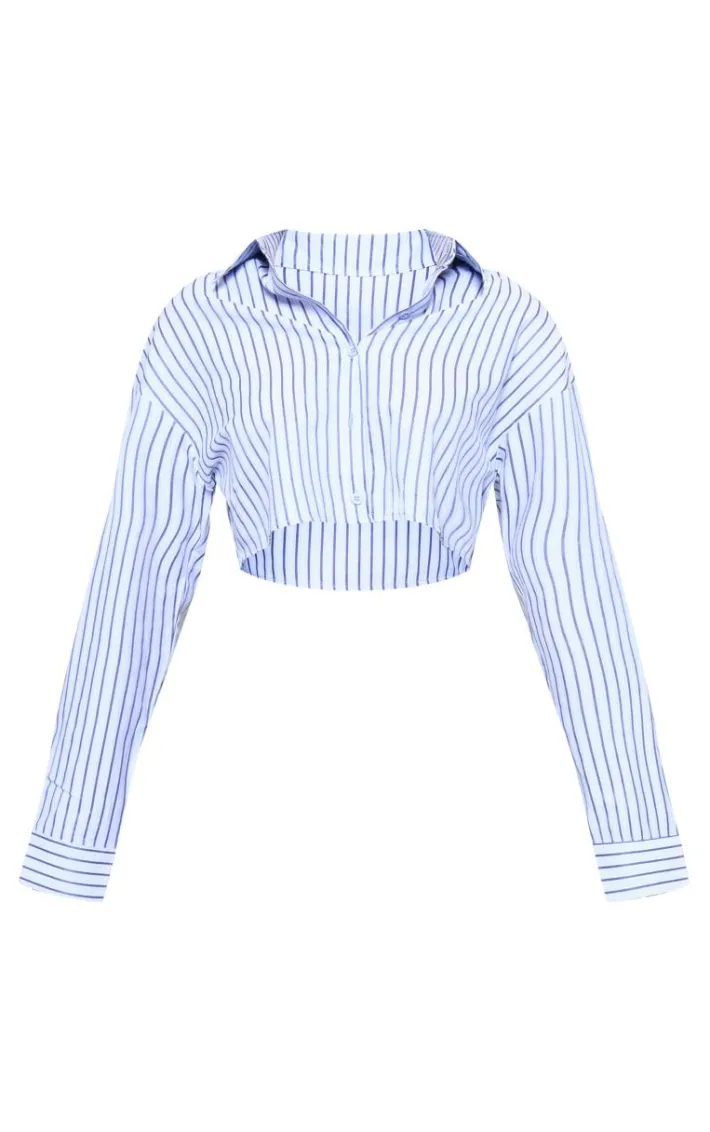 Bring a subtle touch of chic to your outfit of the day with this blue cropped striped shirt. Made from a blue hue material with a striped design, a button through fastening and a cropped fit, what more could you want? Style this cropped shirt with a mini skirt and chunky loafers for a look they won’t be able to take their eyes off.