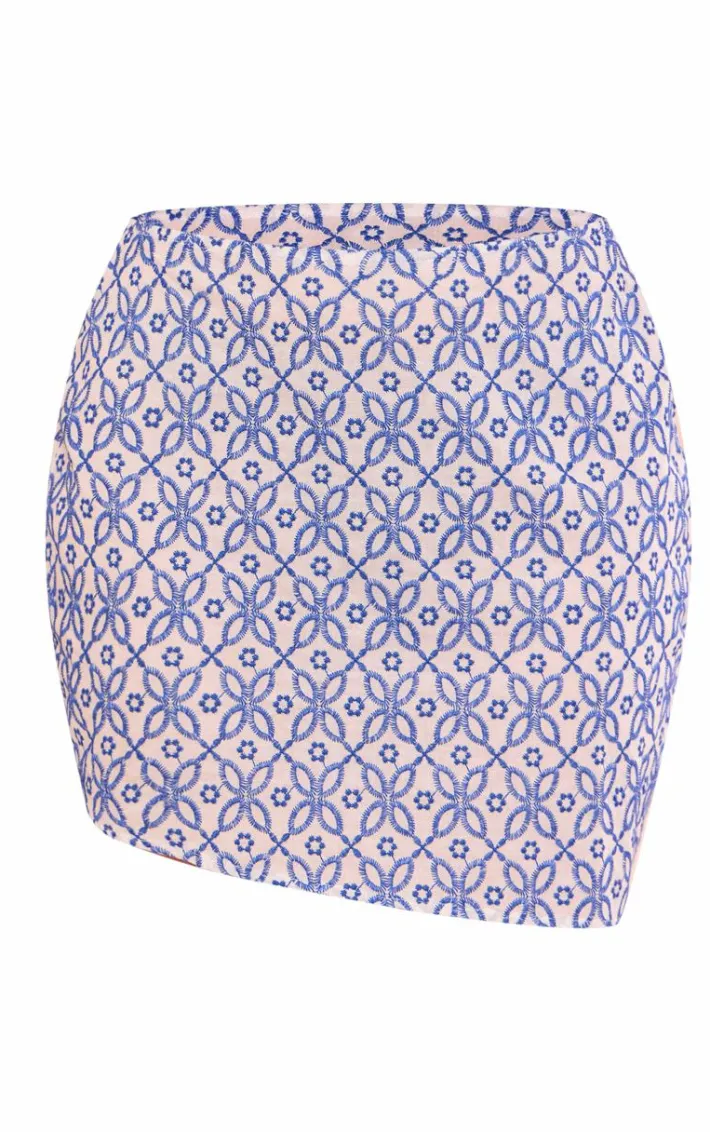 Take your outfit of the day to new heights with this blue embroidered pattern mini skirt, we just can’t get enough. This skirt features a blue embroidered pattern material with a mini length and a figure-flattering, you’re sure to be earning all the compliments. Pair this pattern skirt with a statement top, sandals and simple accessories for a chic finish.