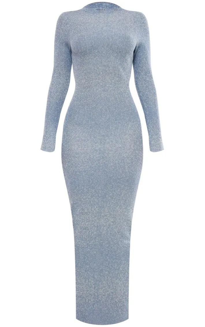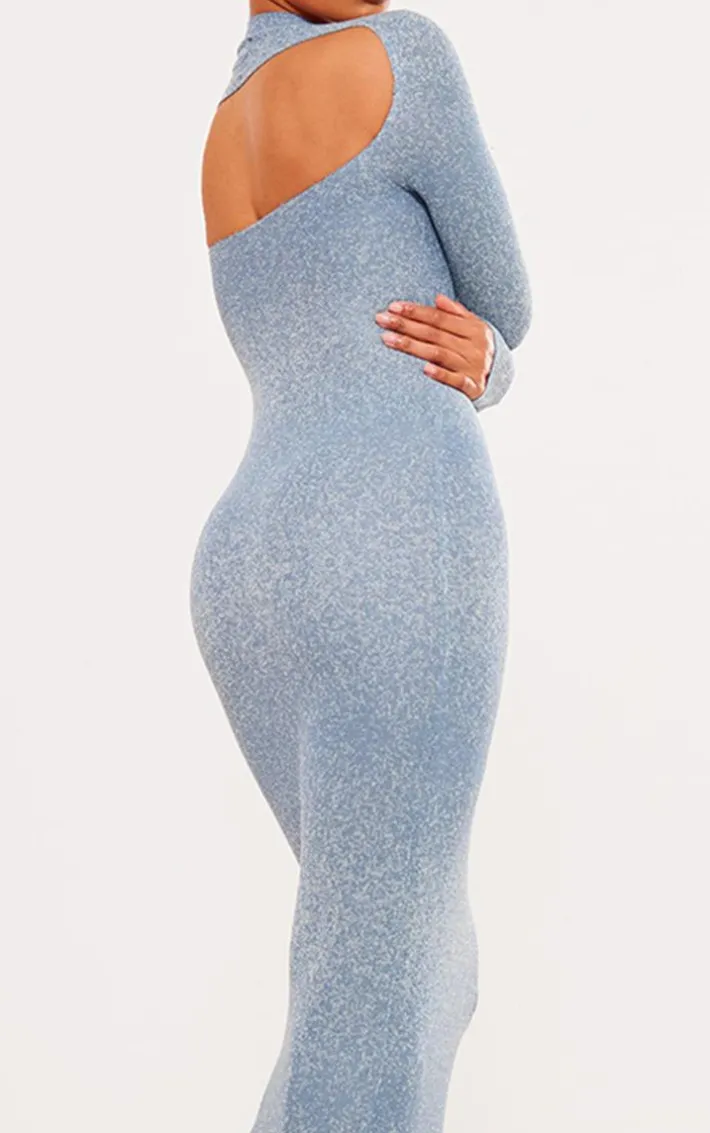 When the weekend calls, so does this blue marl knit long sleeve open back maxi dress. Brought to you in a blue marl knit material with a long sleeve design, what’s not to love? Its open back detail and maxi length will have heads turning no matter what. Style with a pair of heeled boots and your go-to accessories will have you feeling chic this season and beyond.