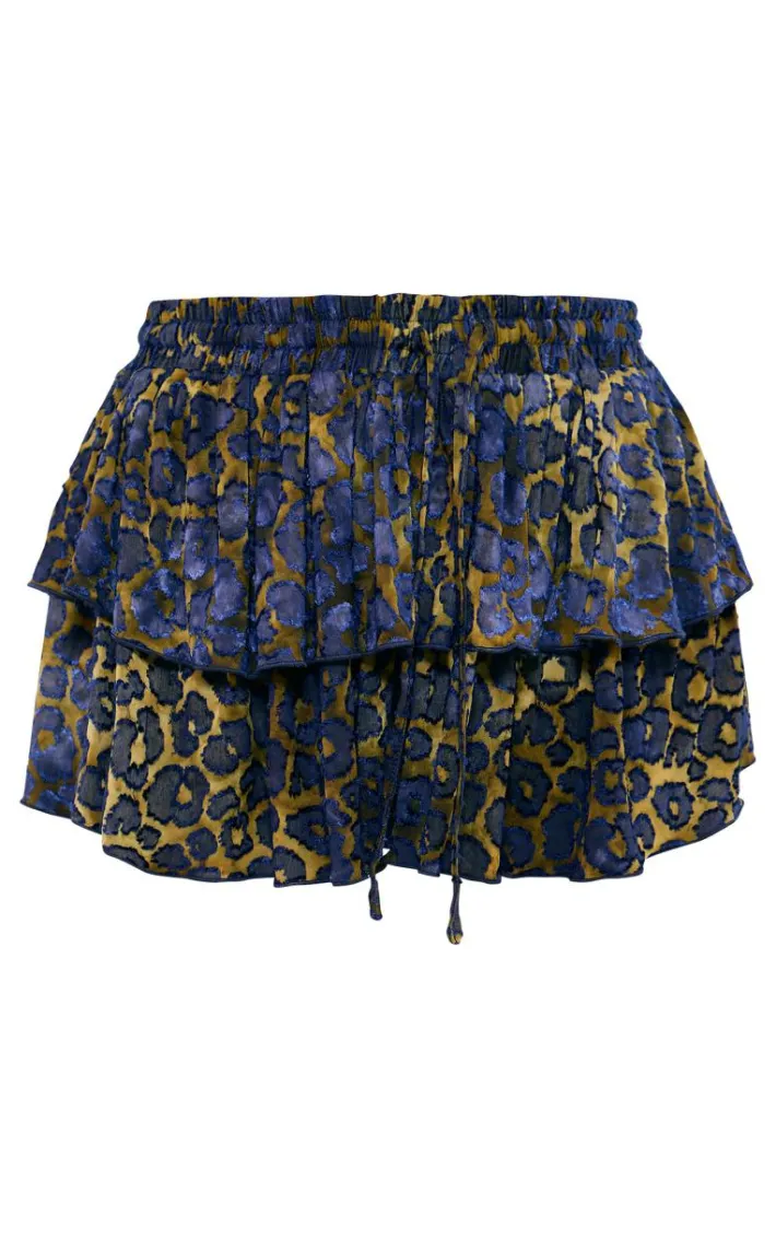 Make a statement in this blue mixed leopard devore drawstring rara skirt. Brought to you in a blue mixed leopard devore material with a drawstring waist and a rara style, how can you resist? Style this rara skirt seamlessly with a cream knit top, leather look boots and some gold accessories for a look that is guaranteed to make you stand out from the rest.