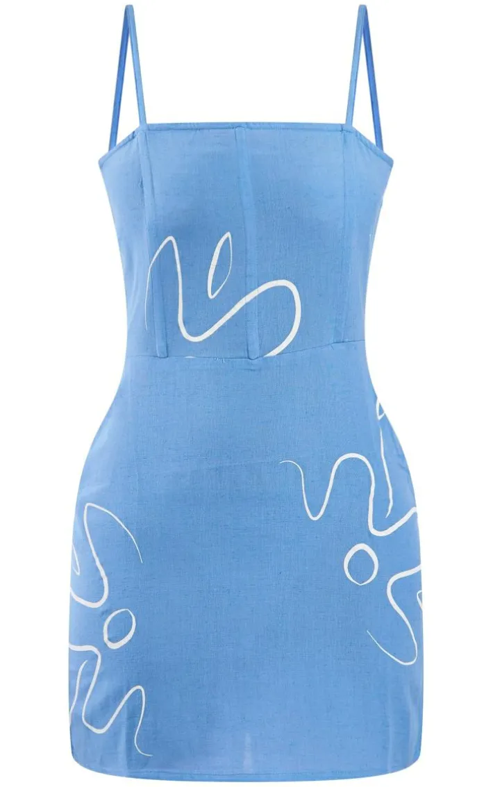 This blue print linen look strappy bodycon dress is at the top of our new season wish list. Perfect for AM to PM styling no matter what the occasion, we are obsessed. Brought to you in a blue hue linen look material with thin straps and a figure-worshipping bodycon fit, how can you not fall in love with this dress? Style with flatform sandals and statement accessories for a look worthy of those weekend plans.