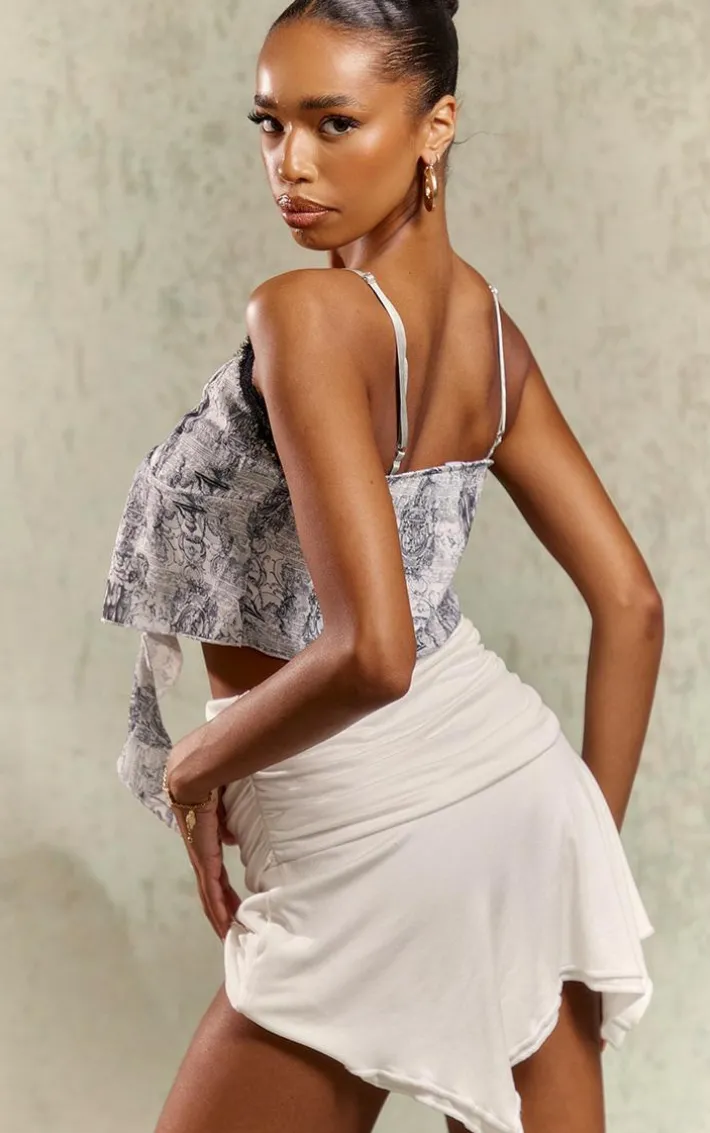 Take your weekend look that extra mile with this blue renaissance woven frill split lace trim front cami top. Brought to you in a blue hue woven material with a renaissance print, a split front design and lace trim detailing for that extra touch of luxe, we just can’t get enough. Style this cami top with a mini skirt, your fave heels and statement gold accessories for an effortlessly chic look to be remembered.