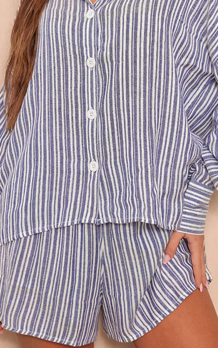 We are all about stripes this season so make sure your new season look stays on point with these blue stripe cotton elasticated floaty shorts. Brought to you in a blue hue cotton material with a striped design and a floaty fit, how can you resist? Pair these floaty shorts effortlessly with the matching shirt, flatform sandals and simple gold accessories for an everyday look that won’t go unnoticed.