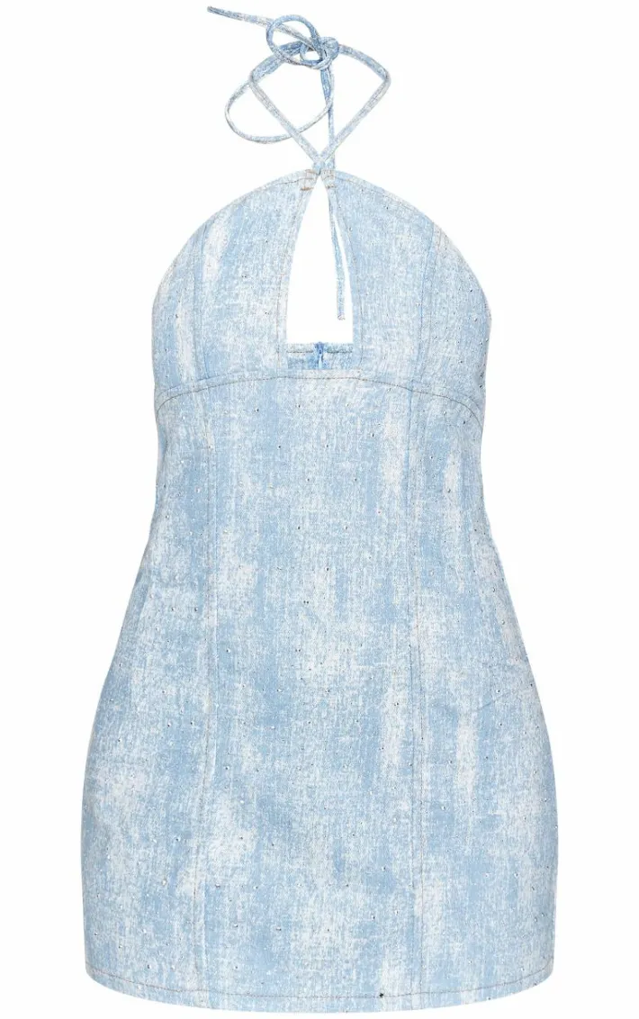 Own the night in this blue studded diamante denim keyhole mini dress. Brought to you in a blue hue denim material with a studded diamante design and keyhole cut out detail, this mini dress is a must have. How can you resist? Style with silver heels and accessories for a chic evening look everyone will be asking about.