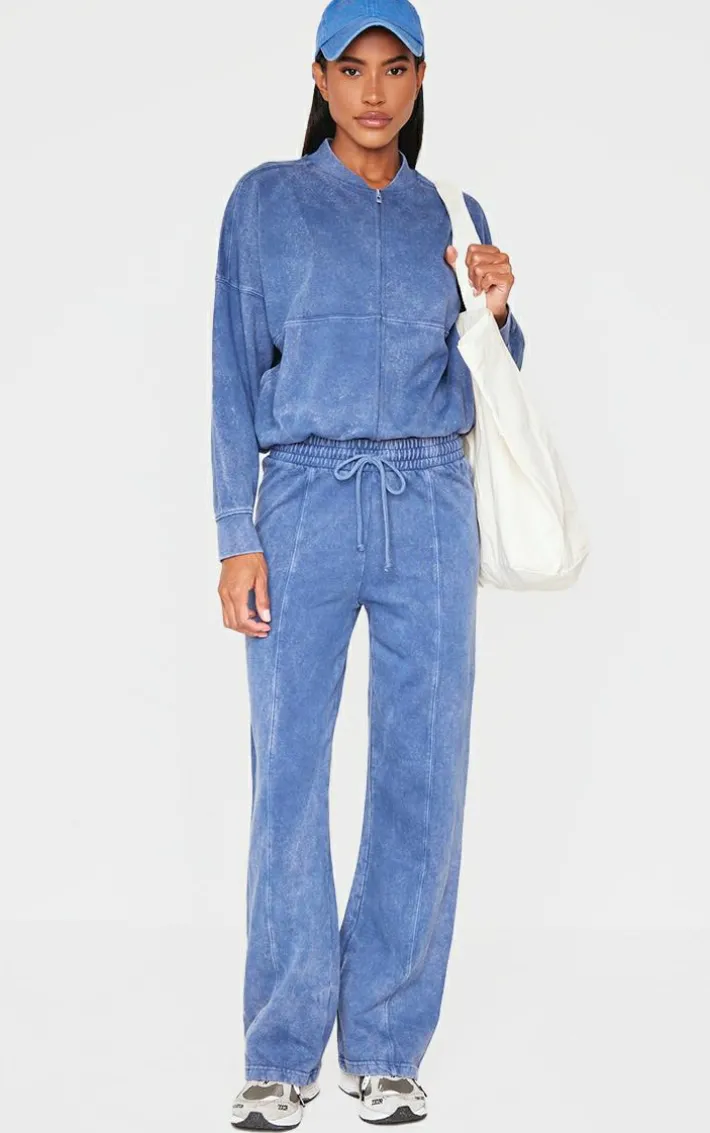 Add some statement hues to your wardrobe with these blue washed seam detail wide leg sweatpants. Brought to you in a blue washed material with a seam detail and a wide leg fit, you are sure to turn heads for all the right reasons. Team these sweatpants with the matching top and a cap for a look like no other.