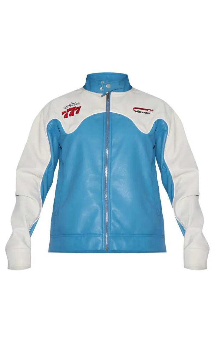 Add a pop of blue into your new season wardrobe with this blue worn faux leather contrast panel oversized jacket, you won’t be able to resist. This jacket features a blue worn faux leather material with a contrasting panel design and an oversized fit. Pair with blue jeans, chunky boots and minimal accessories for a look that will bring all the edge.