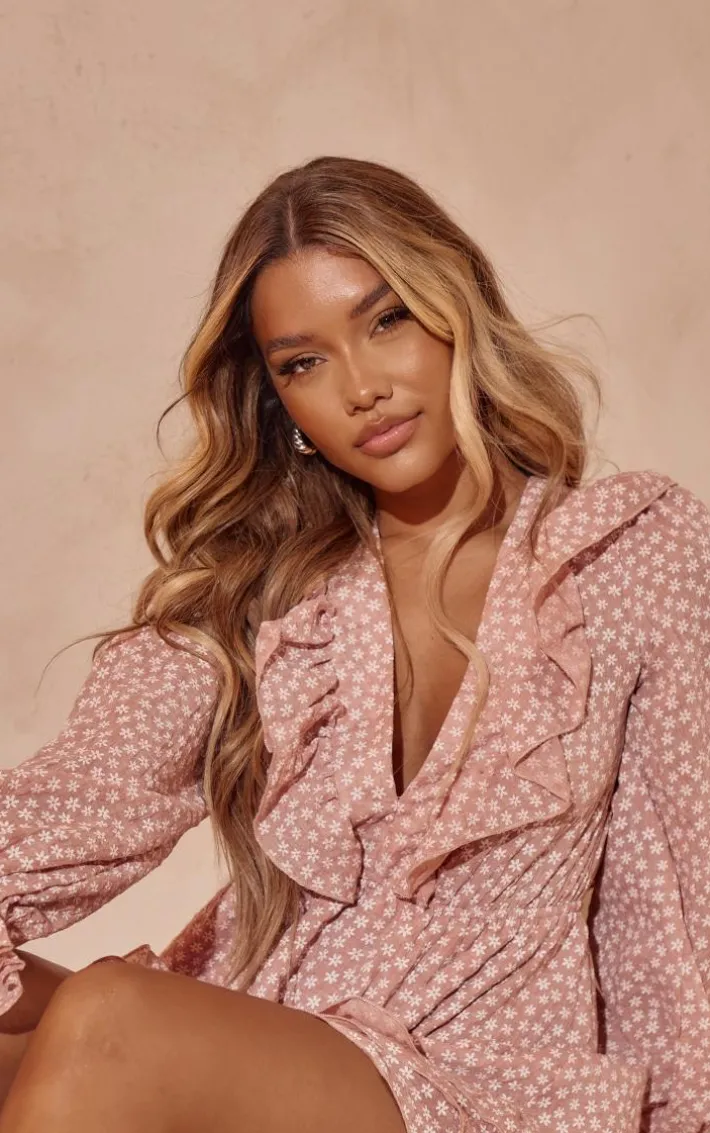 This dress is perfect for the warmer days and beyone. Featuring a blush floral chiffion material with a ditsy design and a tie back detail, we’re obsessed. Style with a mini bag, heels and gold accessories for the perfect combo..