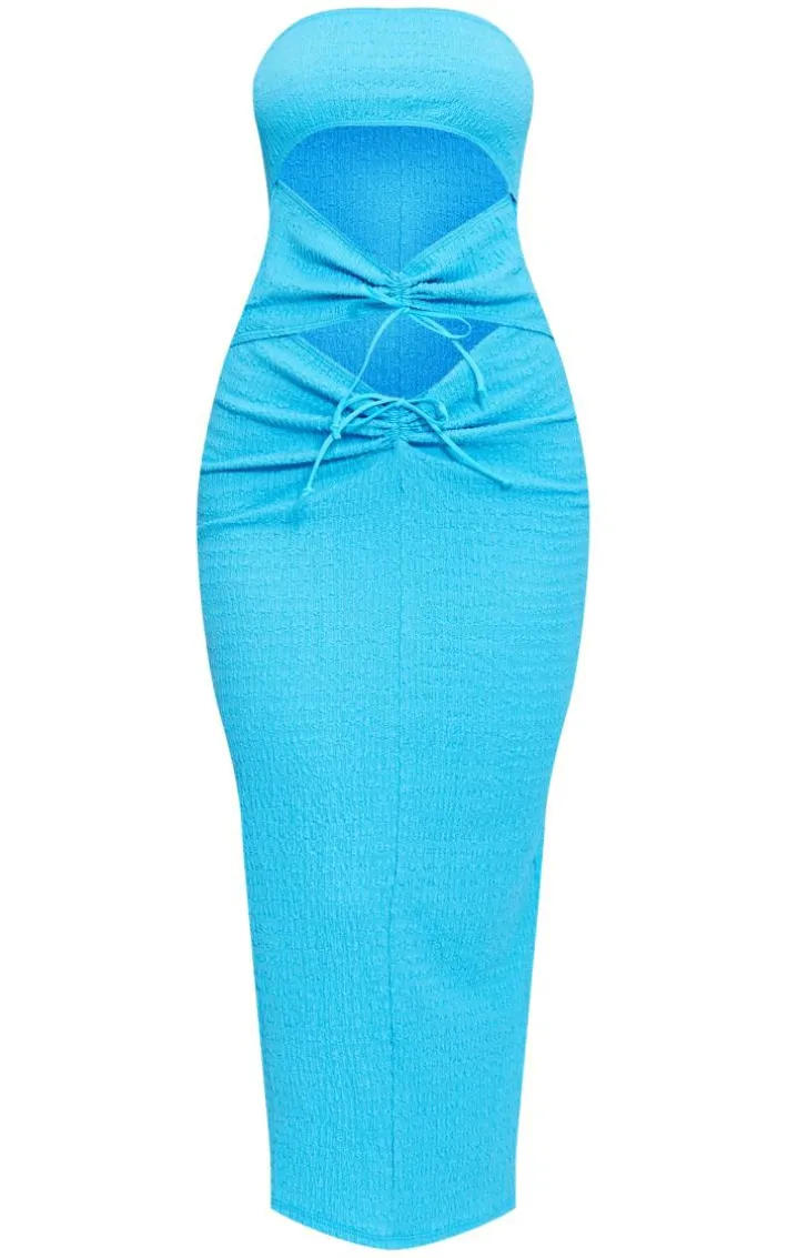 Stay true to blue with this bright blue textured ruched cut out bandeau midaxi dress. This midaxi dress is brought to you in a bright blue textured material with ruched detailing, a cut-out design and a midaxi length, what’s not to love? This midaxi dress is here to banish any of your what to wear weekend dilemmas. Simply style with high heels and accessories for a flawless combo that we can’t stop crushing on.