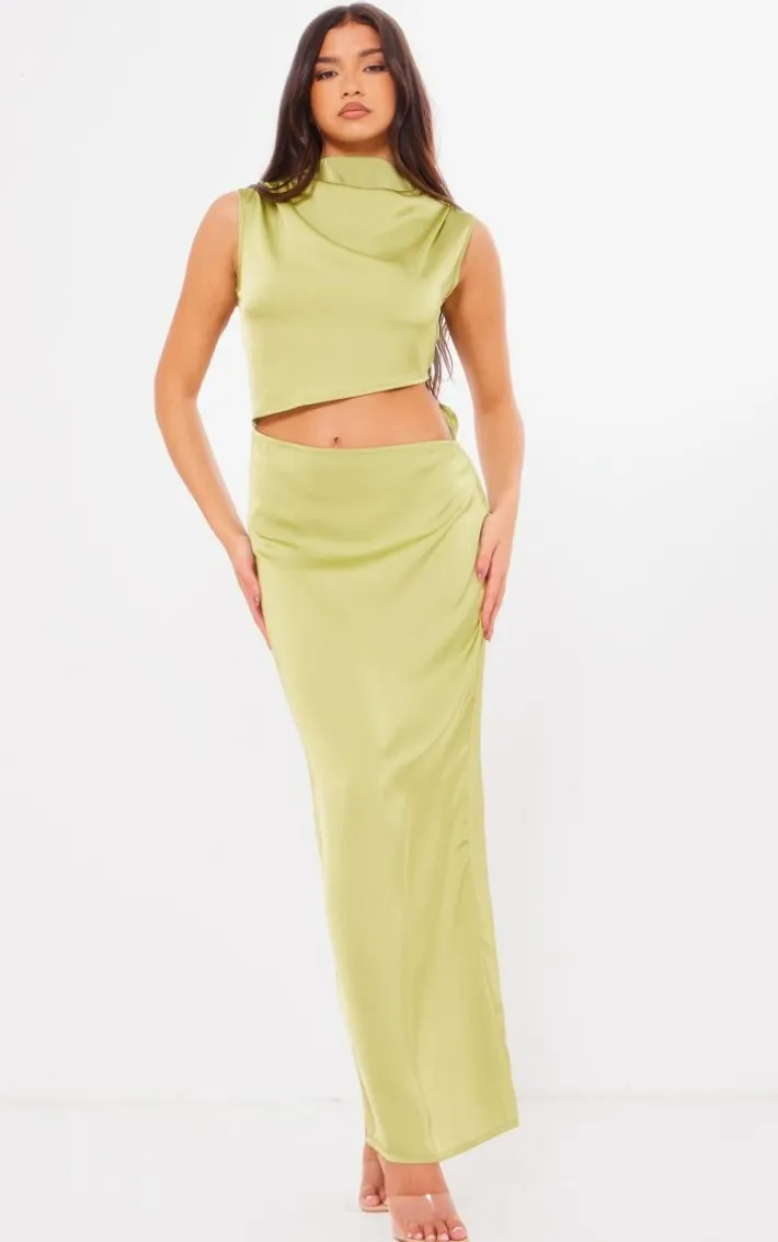 When the weekend calls so does this bright green satin high neck cut out maxi dress. Brought to you in a bright green satin material with a high neck detail and cut out design, we’re in love. Style this maxi dress with clear heels and simple accessories to get everyone talking.