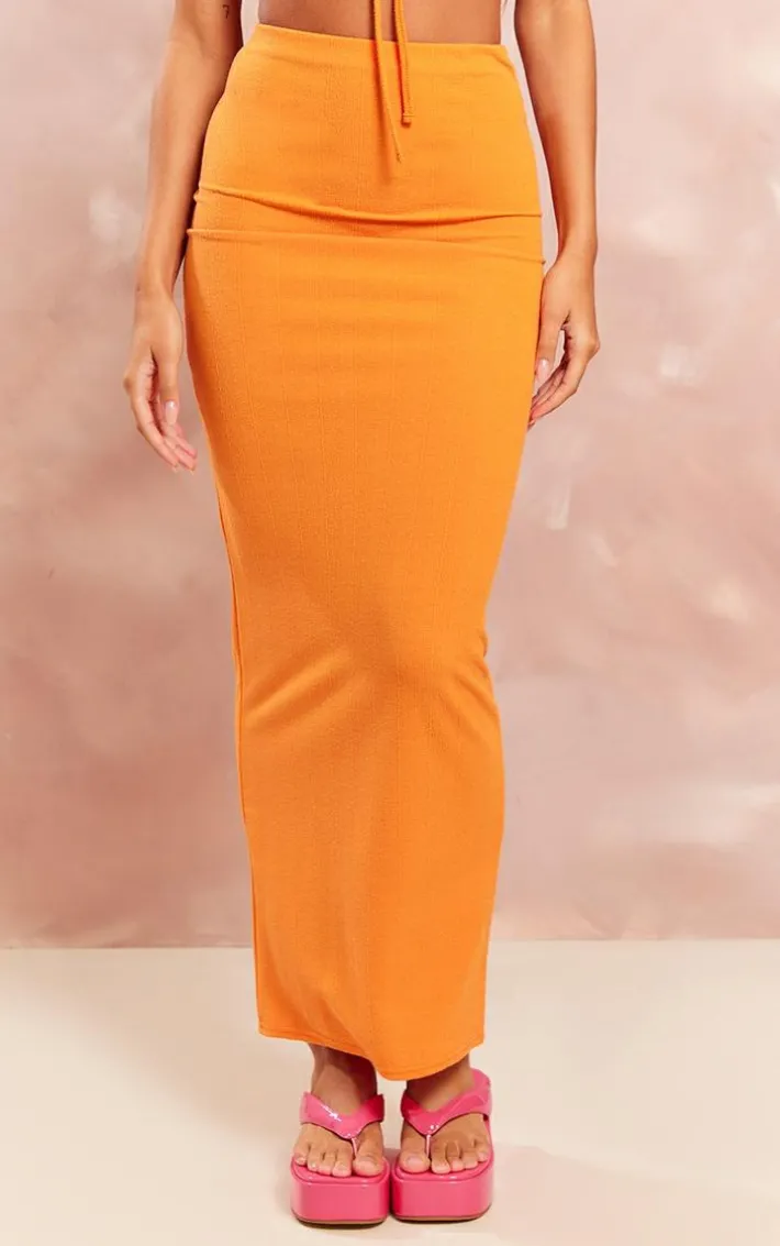 Brighten up your new season aesthetic with this bright orange textured jersey low rise midaxi skirt. Brought to you in a bright orange hue textured jersey material with a low rise design and a figure-worshipping midaxi fit, what’s not to love? Style this midaxi dress with the matching crop top, flatform sandals and gold accessories for a look that is sure to make you stand out from the crowd this weekend.