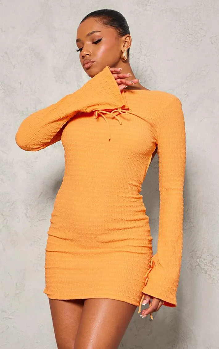 Add some bold hues to your wardrobe this season with this bright orange textured open back flared sleeve shift dress and be sure to always stand out from the crowd. Brought to you in a bright orange textured material with an open back and flared sleeves, how could you not be in love? This shift dress is the ultimate styling staple and we know you won’t be able to resist adding it to your basket. Team with sandals and accessories for a look that everyone will want.