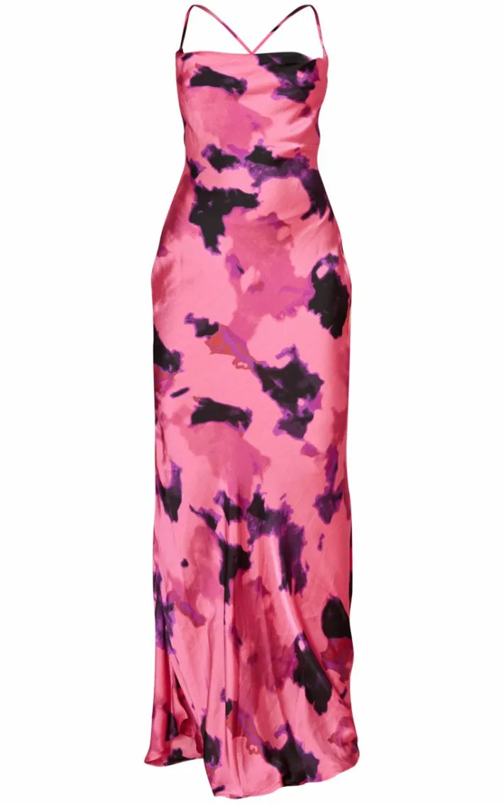 Get your glam on with this bright pink printed satin halterneck cowl maxi dress. Made from a bright pink printed satin material with a halterneck cowl design, you’re sure to have all eyes on you. When the weekend calls so does this maxi dress. So what are you waiting for? Shop the look and opt for a pair of heels and your fave accessories. It’s a yes from us.