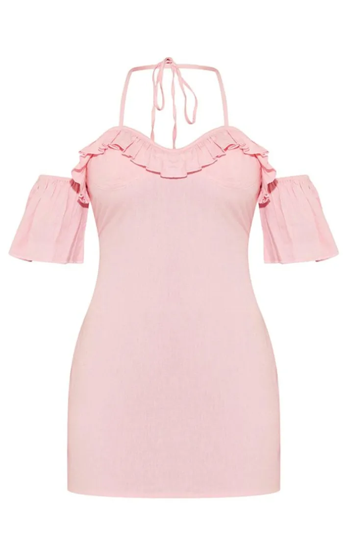 Get your glam on with this bright pink woven frill bardot halter cut out shift dress. Made from a bright pink woven material with a cut-out design and a halterneck, you’re sure to have all eyes on you. When the weekend calls so does this bright pink shift dress. So what are you waiting for? Shop the look and opt for your dreamy high heels and accessories. It’s a yes from us.
