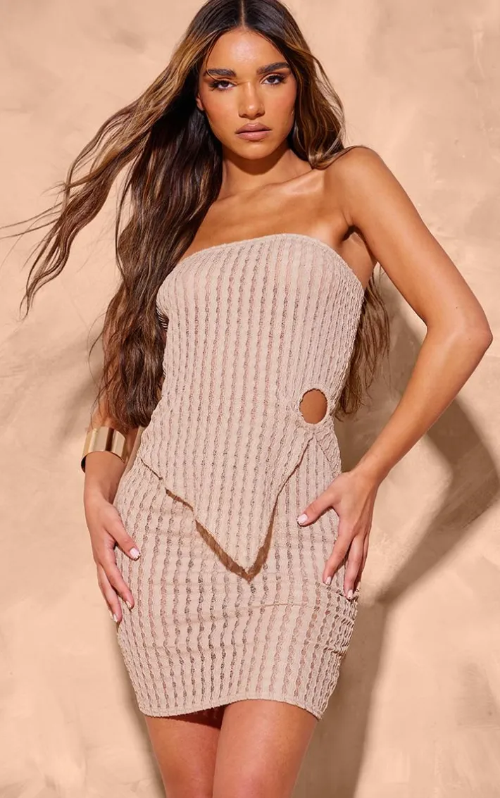 This brown bandeau textured ring detail mini dress is here to banish any of your what to wear dilemmas. Brought to you in a brown bandeau textured material with ring detail and a mini length, we cant get enough. From start to finish this mini dress will have you looking totally on-trend. For a next-level look simply style with the sandals and accessories for a look that will have you setting trends wherever you step foot.