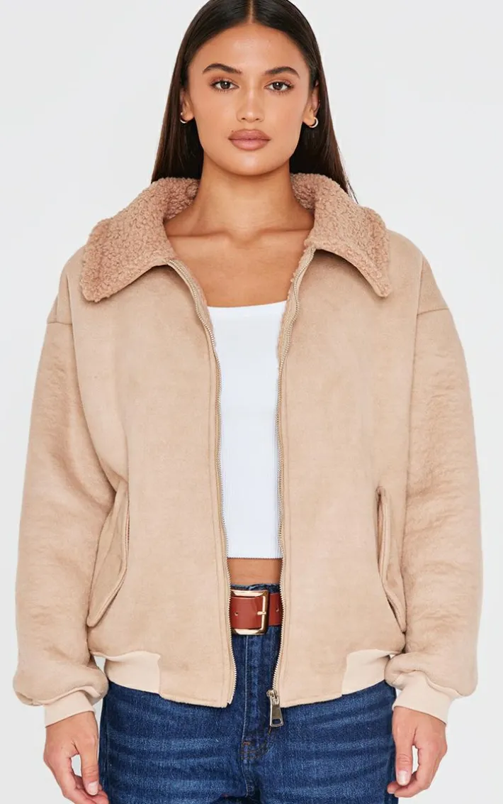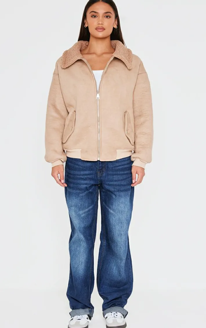 This brown borg faux suede bomber jacket is perfect as an A/W outfit topper. Brought to you in a seasonal brown tone, with a cosy borg and faux suede material, how can you say no? We’re loving the bomber style, so team with a pair of deep hue jeans and simple accessories for a fool proof finish.