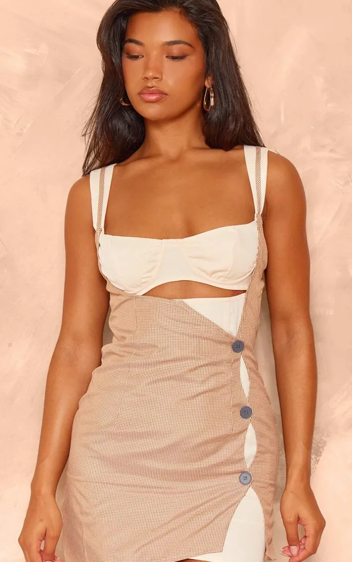 Turn heads for all the right reasons in this brown check underwired button bodycon dress. Brought to you in a brown check material with an underwired detail and buttoned design, this bodycon dress is everything you need and more. Pair with tan sandals and gold accessories for a chic outfit of the day that will earn you all the compliments.