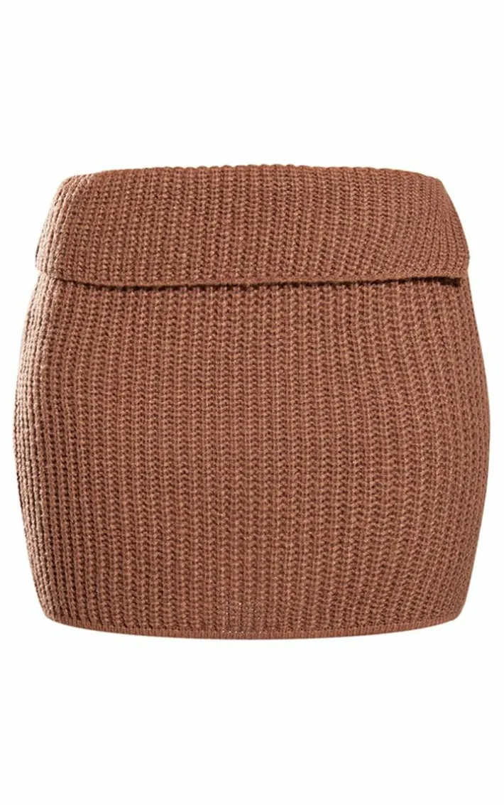 Enter the new season in style with this brown chunky knit fold over mini skirt. Brought to you in a brown hue chunky knit material with a fold over design and a mini fit, what more could you want? This mini skirt is sure to become a staple in your wardrobe. Style seamlessly with the matching cardigan and knee length heeled boots for a look that can be dressed up or down to suit your plans.