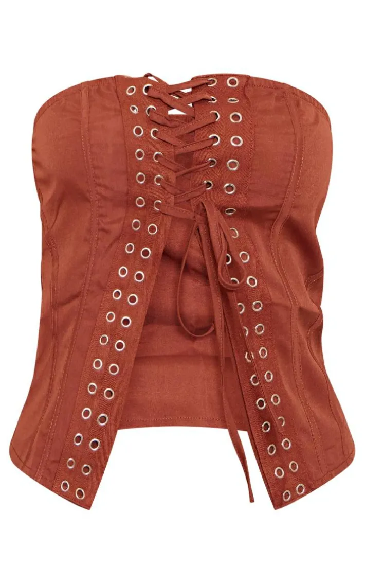 Got plans for the weekend ? Then this brown contrast front eyelet lace up corset is here to solve all your styling dilemmas. It features a brown material with a contrasting front and a lace-up style, you won’t be able to resist. Just add a mini skirt, your fave heeled boots and simple accessories for a look that will get everyone talking.