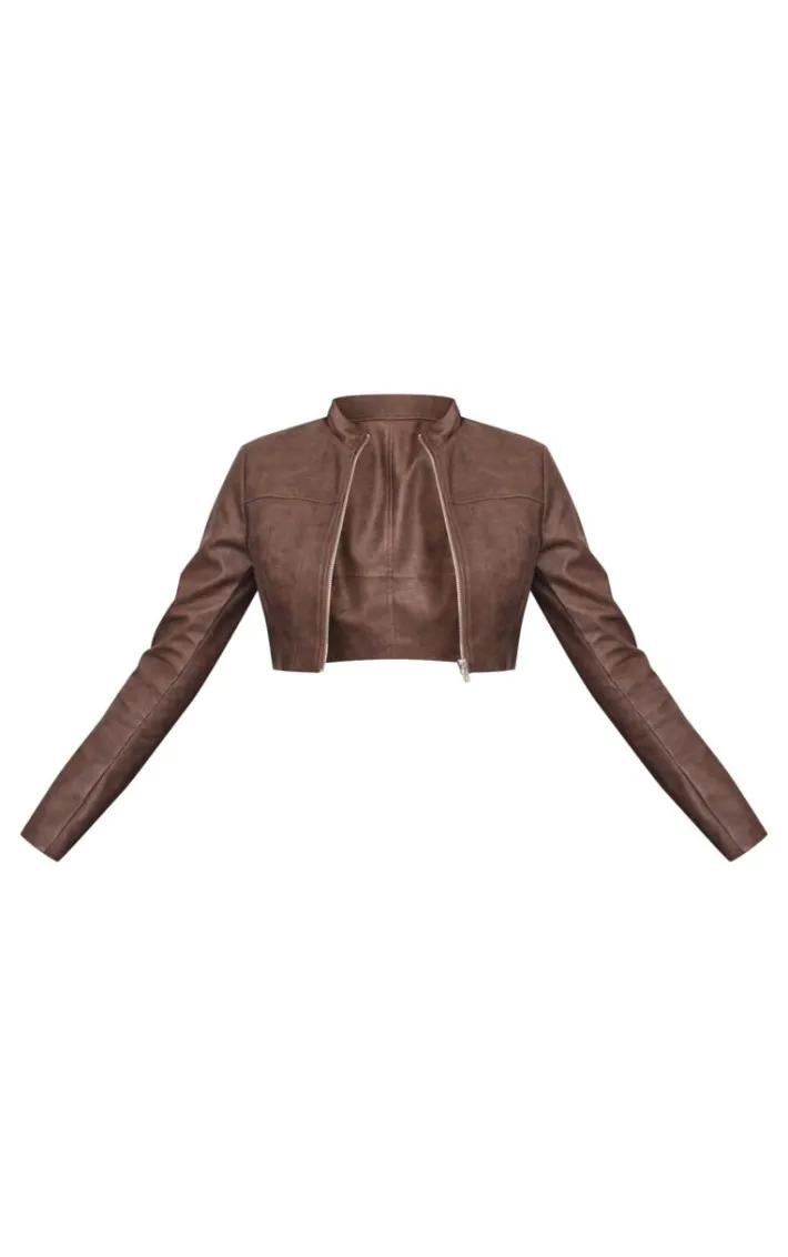 You need this brown faux leather panel details biker jacket. Brought to you in a brown faux leather material with a panel detailing you are sure to turn heads for all the right reasons in this unreal jacket. Team effortlessly with a mini skirt and a pair of knee high chunky boots for a fool proof finish everyone is obsessing over.